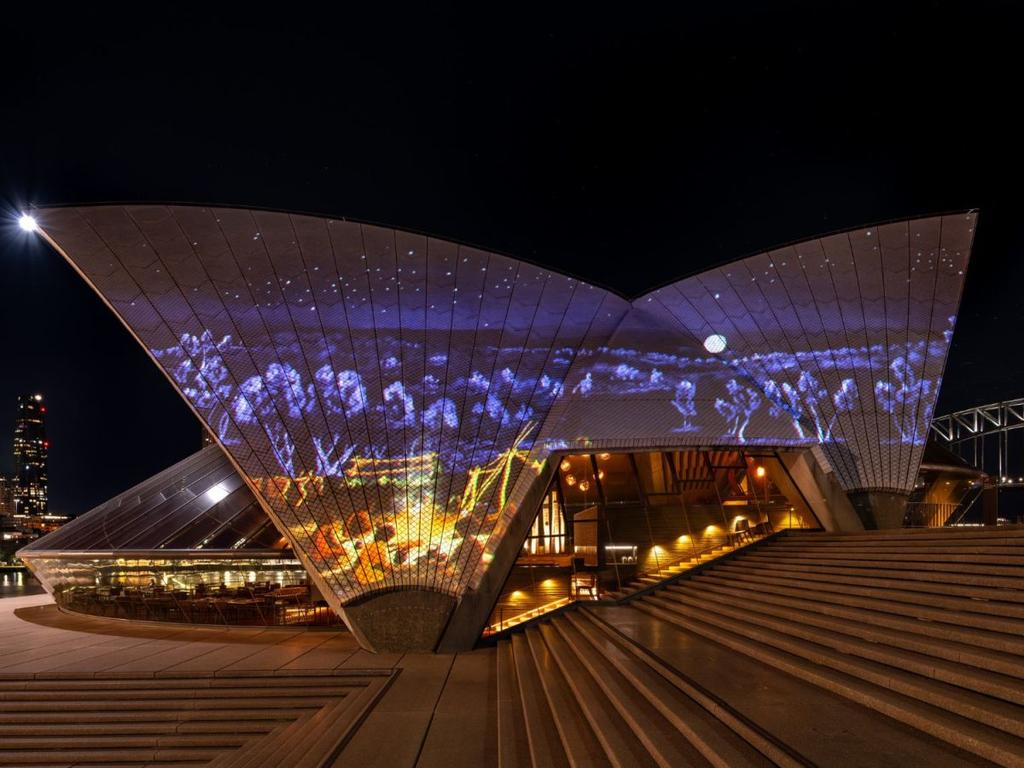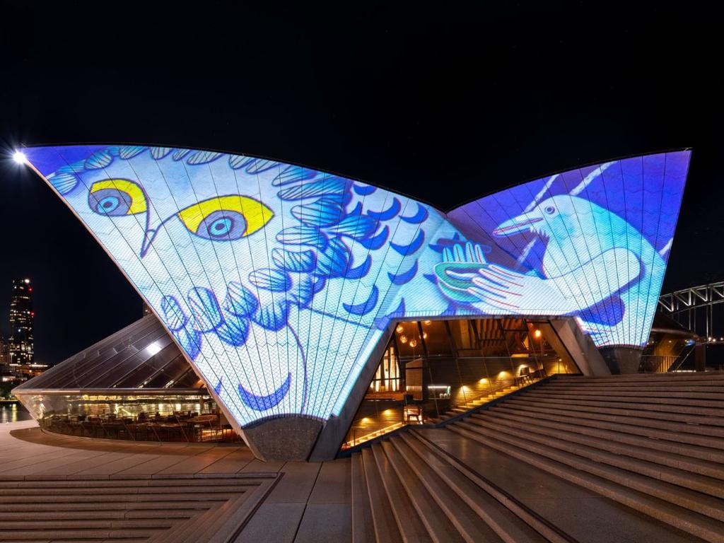 Badu Gili - meaning 'water light' in the language of the traditional owners of Bennelong Point, the Gadigal - is a free nightly experience that explores First Nations stories in a spectacular six-minute projection on the Opera House's eastern Bennelong sails.
