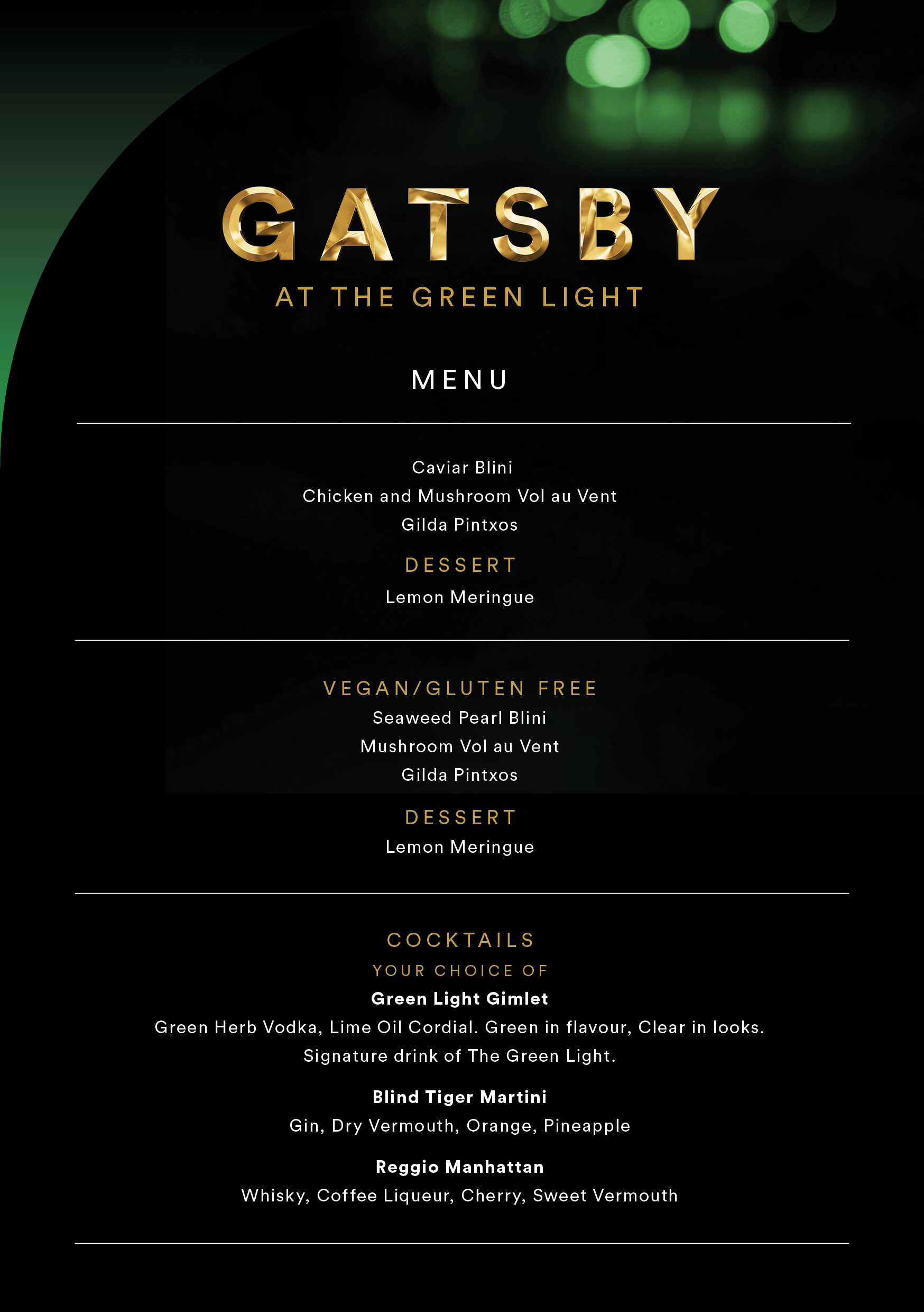 Dress to dazzle your host as Gatsby returns to reclaim the night. Step into the Green Light this summer where the champagne flows and whispers of the past still dance in the air.