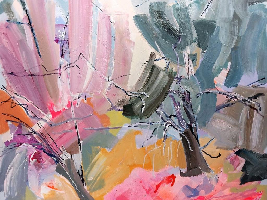 She now works in her inner-city studio creating contemporary abstracts, landscapes, still life, portraits and streetscapes based on what is around her. This might be her immediate environment, or memory of a place, or the people close to her. Her work has a unique energy and holds a sense of place, revealing how comfortable and familiar she is with where she has lived, and her local neighbourhood.