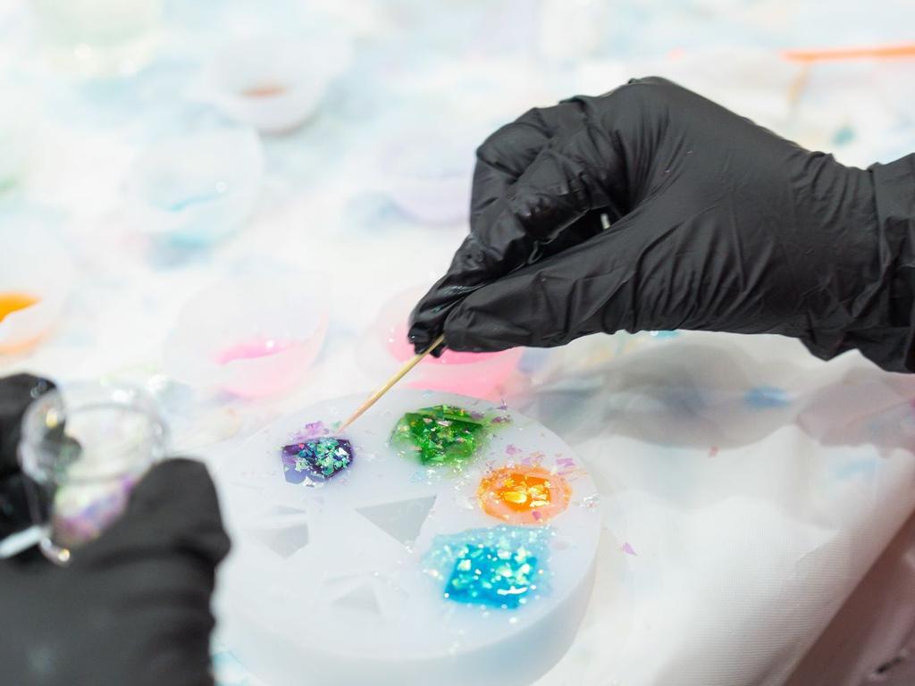 All materials provided (resin, pigments, glitters, moulds, and more!)