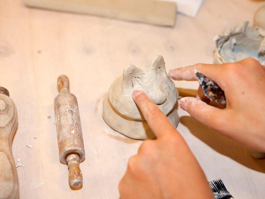 This workshop is a great introduction to hand‑building, giving kids the chance to experiment with pressing, rolling, stamping and sgraffito as they decorate their work.